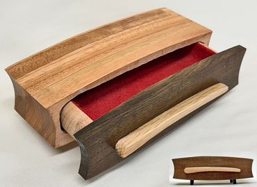 Dave wanted to try out different design and construction techniques to develop his wood working skills. The result was a stylish trinket box loosely based on a 1960's stereo system which he generously offered to the Hub for sale.